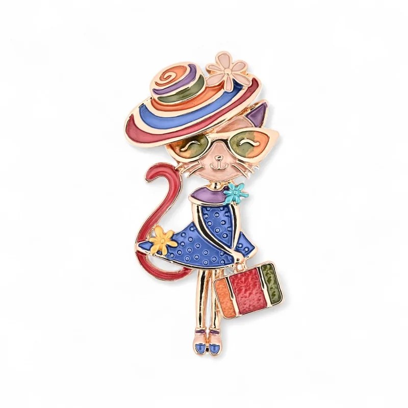 Cette broche chatte fashionista est parfaite pour apporter une explosion de couleurs à vos tenues. Elle convient particulièrement aux personnalités audacieuses qui aiment les accessoires originaux et vintage.