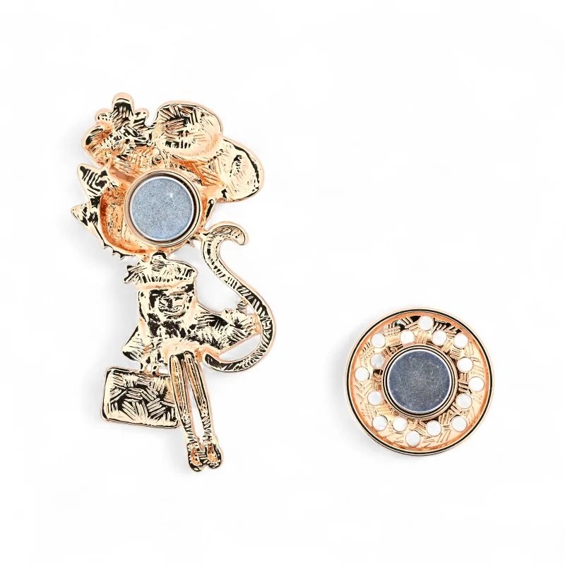 Cette broche aimantée tendance représente une véritable œuvre d'art miniature célébrant l'univers félin et la mode vintage. Chaque détail de cette chatte fashionista raconte l'histoire d'une personnalité qui aime les couleurs et n'a pas peur de se démarquer. Le design maximaliste assumé témoigne d'un savoir-faire artisanal exceptionnel, avec un assemblage complexe de multiples émaux colorés qui créent une harmonie arc-en-ciel parfaitement maîtrisée. Cette broche aimantée est bien plus qu'un simple accessoire : c'est une déclaration de style qui apporte instantanément joie et sophistication à toutes vos tenues.