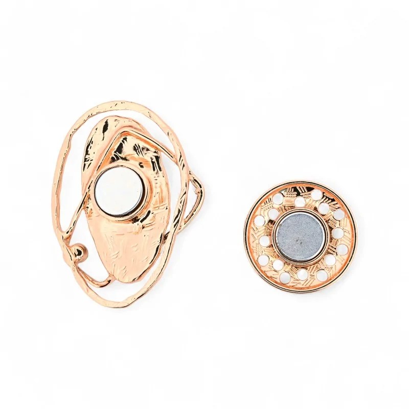 Cette broche aimantée artistique représente bien plus qu'un simple accessoire : c'est une véritable sculpture contemporaine miniaturisée. Le design exceptionnel marie harmonieusement une pierre naturelle marbrée grise de forme organique avec des lignes métalliques rose gold fluides qui s'entrelacent dans un mouvement perpétuel. Chaque pièce est absolument unique grâce à la pierre centrale aux veines et nuances naturelles. Les pierres facettées (onyx noir brillant et cristal fumé gris) complètent cette composition sculpturale d'exception, créant un dialogue visuel fascinant entre matières brutes et finitions polies premium. L'inspiration artistique puise dans l'univers de l'art contemporain et ses sculptures mobiles, ainsi que dans les formes organiques modernes.