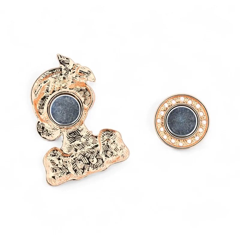 Cette broche aimantée se distingue par sa palette chic intemporelle alliant blanc pur élégant, noir profond, rose fuchsia glamour, doré rose gold luxueux et beige porcelaine délicat. Les proportions exagérées des lunettes et du nœud créent un effet fashion moderne tout en conservant l'élégance classique. Le top blanc immaculé présente un col fantaisie orné de perles dorées décoratives avec des motifs broderies en relief, évoquant un style haute couture. Cette broche vintage chic est parfaite pour les événements chics, vernissages, ou simplement pour affirmer votre style sophistiqué au quotidien. Notre collection de broches aimantées fashion propose d'autres modèles dans cet esprit vintage raffiné.