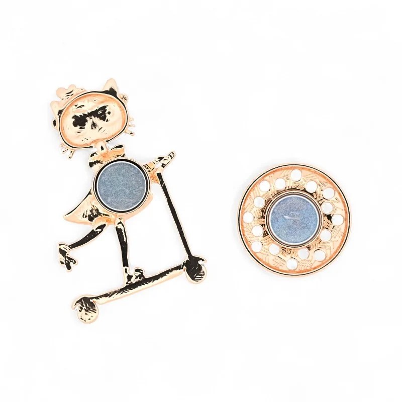 Cette broche aimantée chat lunettes transcende les codes du bijou fantaisie traditionnel. Le design street art kawaii séduit par ses détails soignés : moustaches dorées délicates, robe noire évasée avec détails gris, et trottinette aux roues grises parfaitement proportionnées. La finition émaillée résistante garantit une brillance durable, tandis que le système magnétique innovant permet une fixation facile sur vestes en jean, sacs à dos, écharpes ou sweats sans risquer d'abîmer vos tissus préférés. Mode Tendance propose une sélection exclusive d'accessoires de mode tendance pour compléter parfaitement votre style urbain branché.