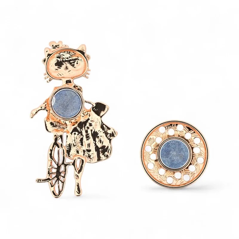 Découvrez cette broche aimantée exceptionnelle mettant en scène une adorable chatte à lunettes pédalant sur son vélo vintage avec un petit chaton dans le panier. Cette composition romantique aux finitions rose gold capture la douceur d'une balade champêtre féline. Un bijou collection narratif qui raconte une histoire pleine de tendresse pour tous les amoureux des félins et des accessoires poétiques uniques.