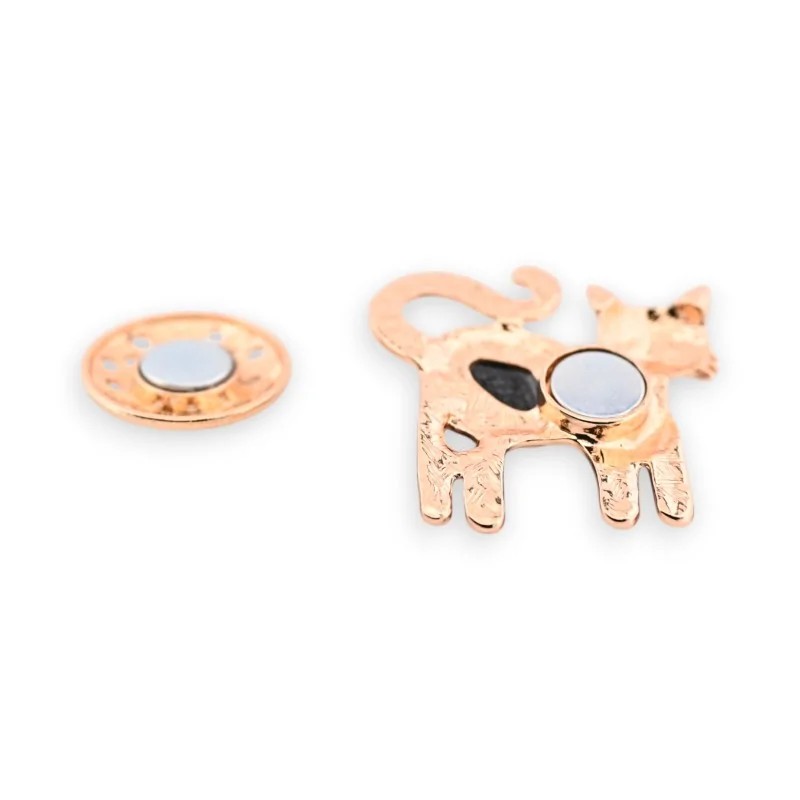 Cette broche chat aimantée représente l'alliance parfaite entre l'élégance et l'originalité dans l'univers des bijoux animaliers. Conçue avec un souci du détail remarquable, elle présente un design félin captivant qui séduit immédiatement les amoureux des chats. Le corps du félin, finement travaillé dans un métal doré de qualité, révèle une silhouette gracieuse aux proportions parfaites. Les pierres fantaisie incrustées dans le corps apportent une dimension texturée unique, avec leurs tons naturels de gris et beige qui créent un contraste harmonieux avec la dorure. Cette création artistique offre un rendu visuel sophistiqué qui attire immédiatement le regard et témoigne d'un savoir-faire artisanal exceptionnel.