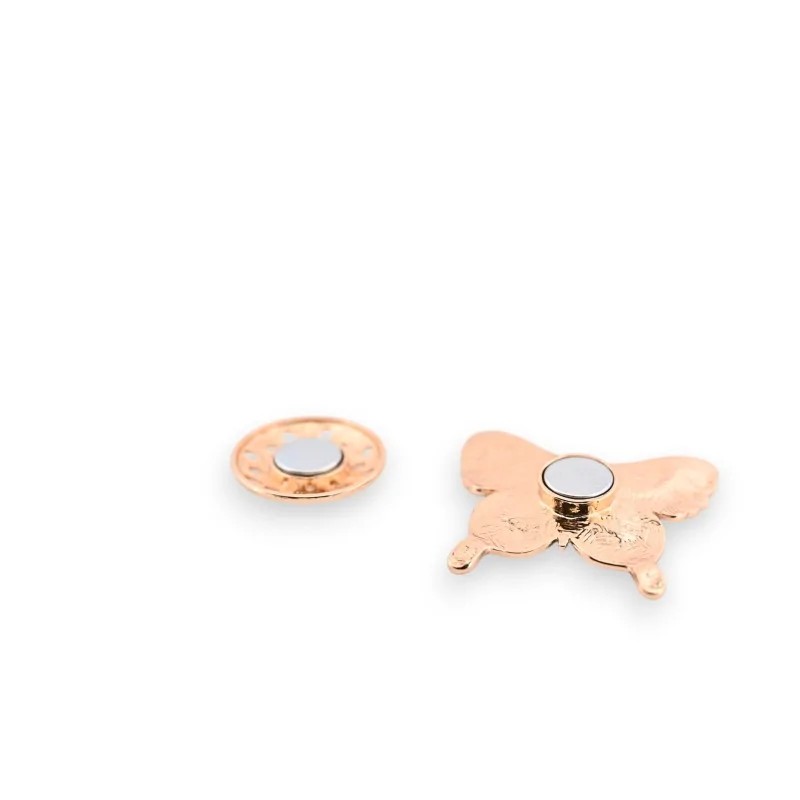 Cette broche papillon dorée se distingue par son design remarquablement détaillé qui capture toute la grâce de cet insecte emblématique. Les ailes présentent un effet nacré subtil qui contraste harmonieusement avec le métal doré de la structure. Le corps central de la broche est entièrement serti de cristaux scintillants qui reflètent la lumière sous tous les angles. Cette technique d'incrustation minutieuse confère à la pièce un éclat incomparable qui sublime n'importe quelle tenue, qu'elle soit décontractée ou sophistiquée. L'alliance parfaite entre l'artisanat traditionnel et l'innovation moderne fait de cette broche magnétique un accessoire d'exception pour les femmes raffinées.