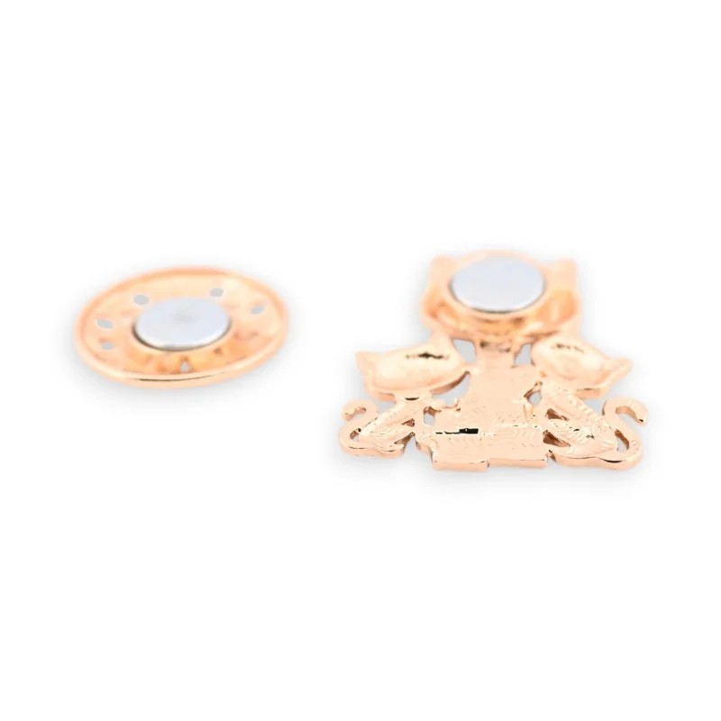 Cette magnifique broche magnétique présente une scène attendrissante mettant en vedette une famille de chats aux expressions craquantes. Le design soigné révèle trois félins aux personnalités distinctes, chacun arborant des finitions dorées de qualité. Les détails minutieux, des moustaches délicatement tracées aux yeux expressifs, témoignent d'un savoir-faire artisanal remarquable qui fait de ce bijou une pièce unique. Les couleurs harmonieuses se déclinent en nuances dorées, cuivrées et naturelles, créant un ensemble visuel captivant. Cette palette chromatique polyvalente s'adapte parfaitement à diverses tenues et styles vestimentaires, offrant une polyvalence remarquable pour sublimer votre garde-robe.