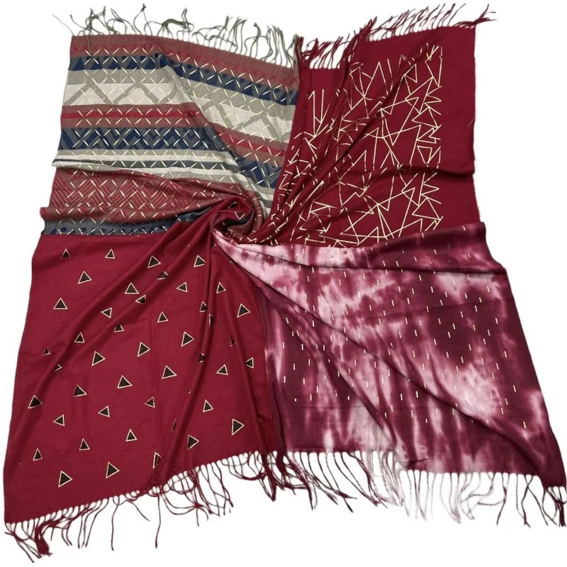 Cette écharpe polaire bordeaux se distingue par son design 4 faces polyvalent qui révolutionne l'art du styling hivernal. Chaque face révèle un motif unique permettant de créer quatre looks distincts avec un seul accessoire. Sa matière polaire premium en 100% acrylique offre une douceur exceptionnelle contre la peau tout en conservant ses propriétés isolantes optimales. Les détails dorés sophistiqués subliment la teinte bordeaux intemporelle, créant un contraste élégant qui illumine votre silhouette. Avec ses dimensions carrées de 140x140cm, elle offre une polyvalence de portage incomparable : classique autour du cou, drapée en châle élégant ou nouée sophistiquement sur les épaules pour les occasions spéciales.